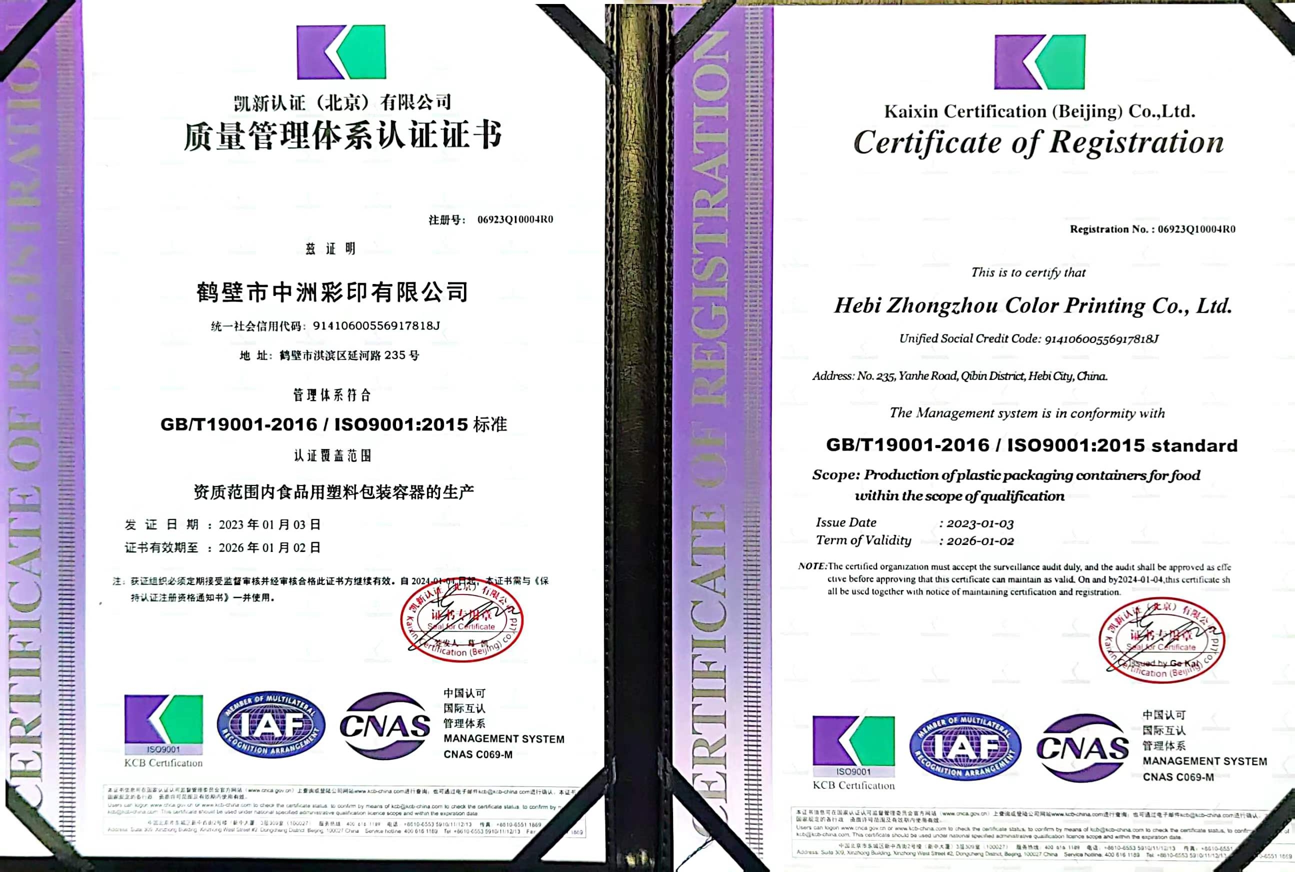 鶴壁市中洲彩印有限公司成立于2010年,位于鶴壁市開發區延河路235號,是一家集創意設計、制版、印刷、復合、制袋為一體的塑料軟包裝高新技術企業。公司占地42畝,建設有無塵凈化車間8000平方米。現擁有中、高速電腦對版印刷機3臺,干式復合機1臺,無溶劑復合機3臺,制袋機20臺,自有設計工作室,總投資5000余萬元。公司現有員工120余名,其中專業技術人員50人,年產值1.2億元。公司于2020年1月份通過了ISO9001質量體系認證,是目前豫北地區較大的塑料軟包裝制作企業。 →